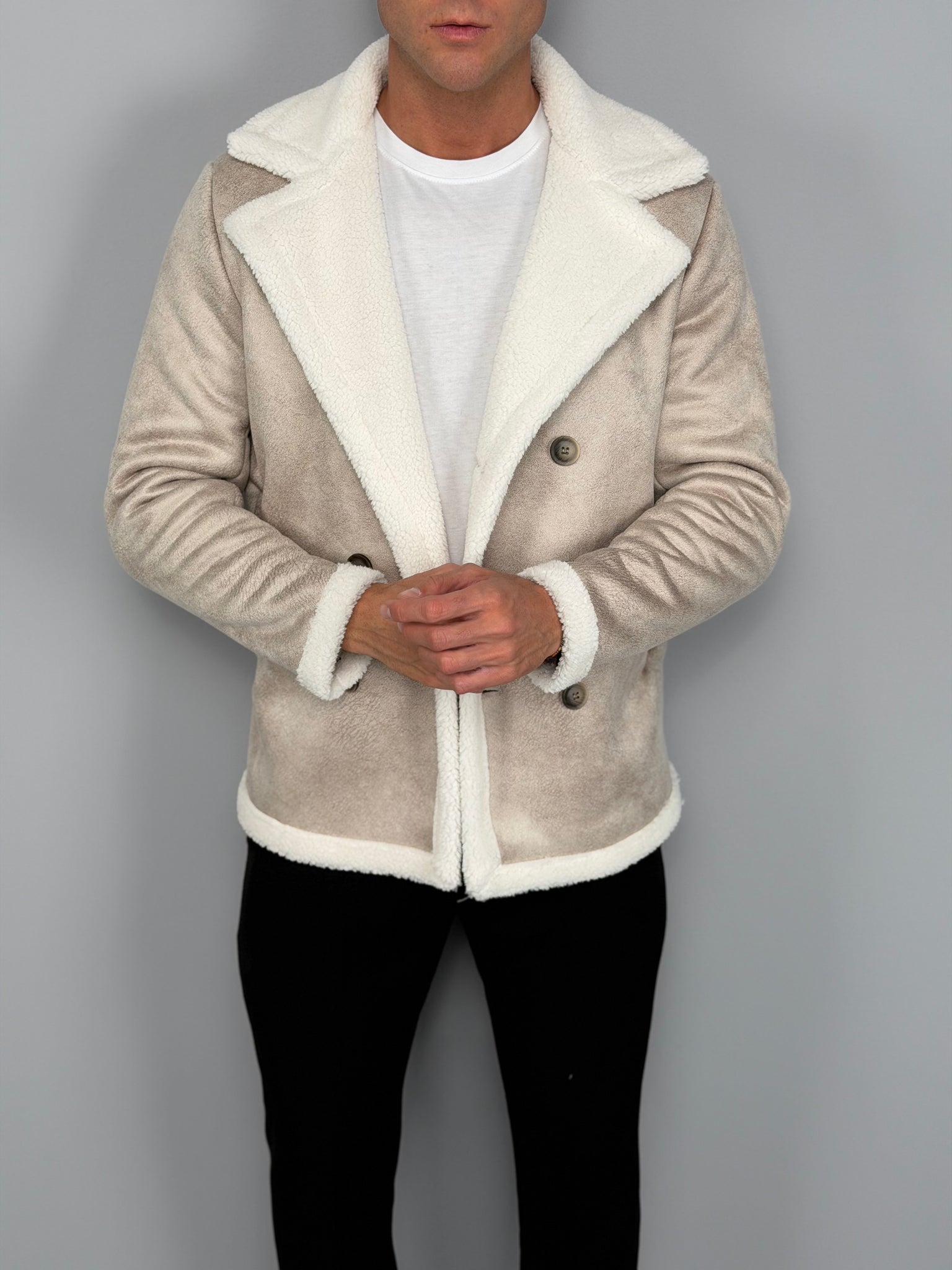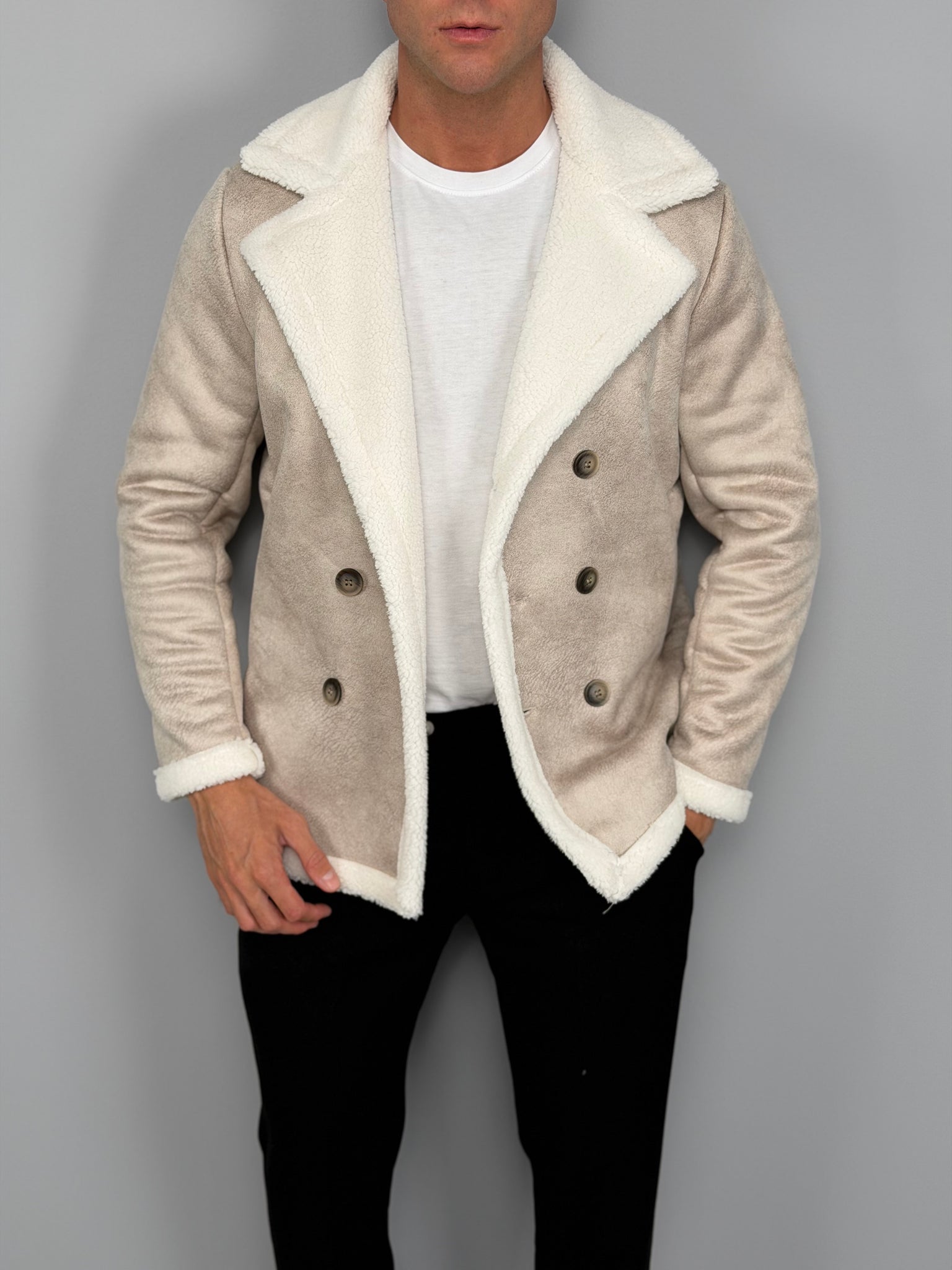 Dettagli: doppiopetto, interno effetto montone, polsini e revers rifiniti