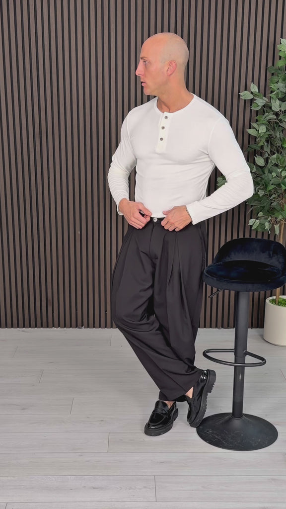 PREMIUM ELEGANT WIDE TROUSERS - BACK POCKETS - color variant: BLACK