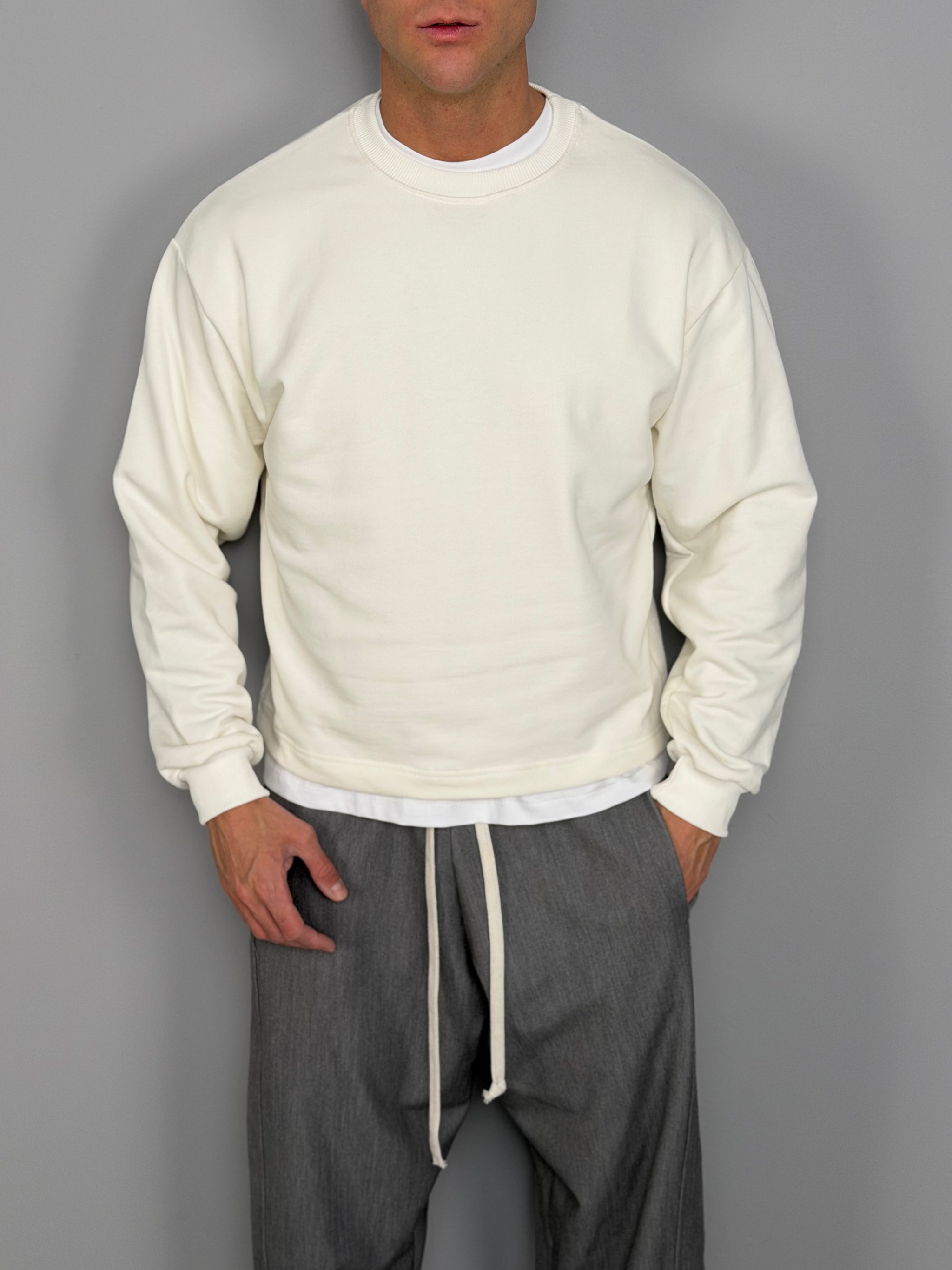 Essential, clean, and super versatile: the Brushed Crop Sweatshirt is the perfect piece to complete everyday looks with a modern touch. Made of 100% cotton , it is soft and comfortable thanks to the brushed interior, ideal for mid-seasons and cooler days.