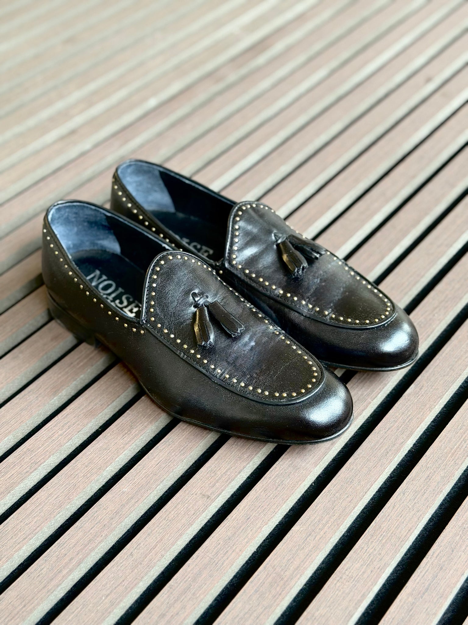STUDDED LEATHER MOCCASIN WITH TASSELS