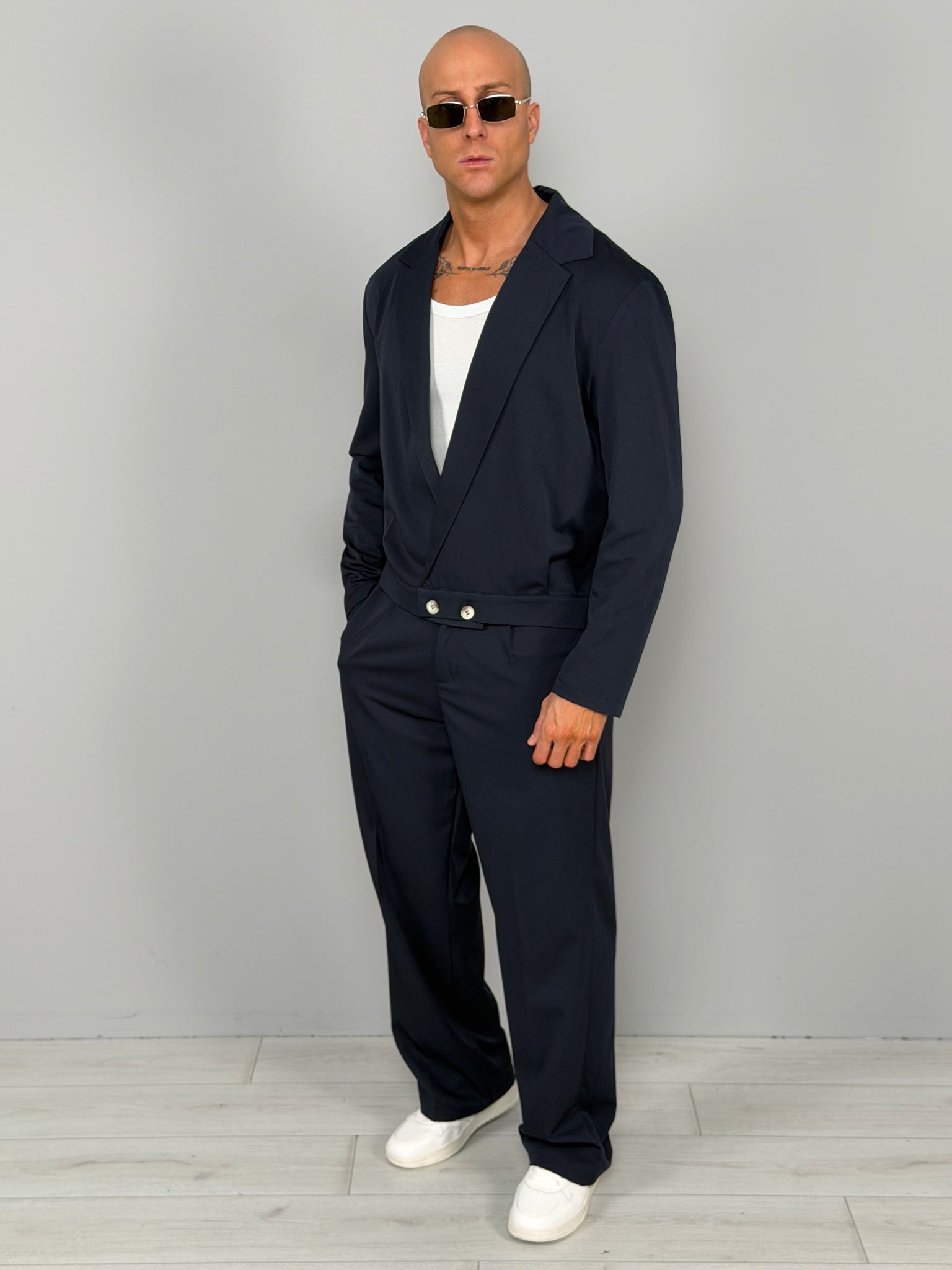 Un completo versatile, ideale sia con sneakers e t-shirt per un mood urban, sia con camicia per un’eleganza più strutturata.