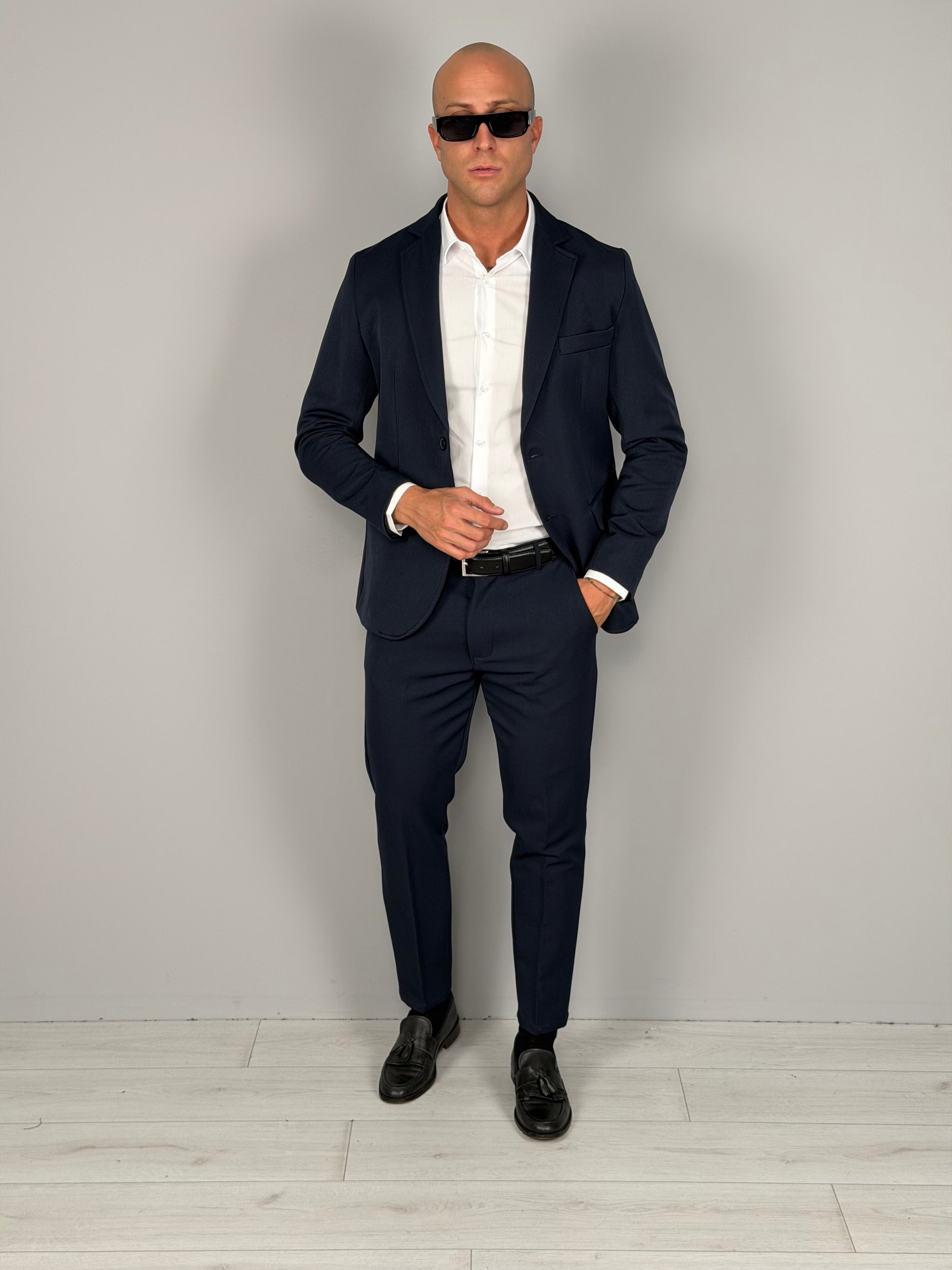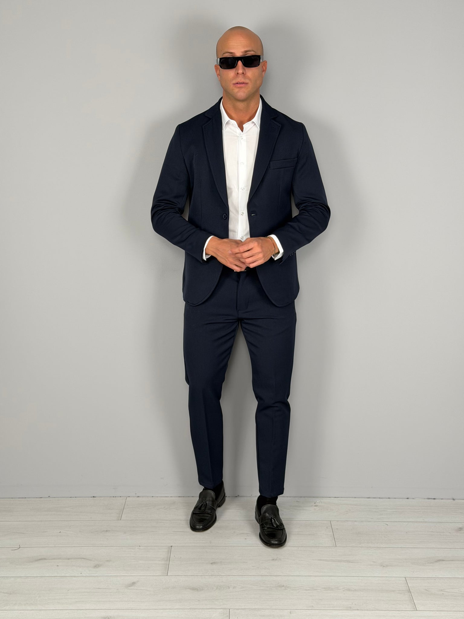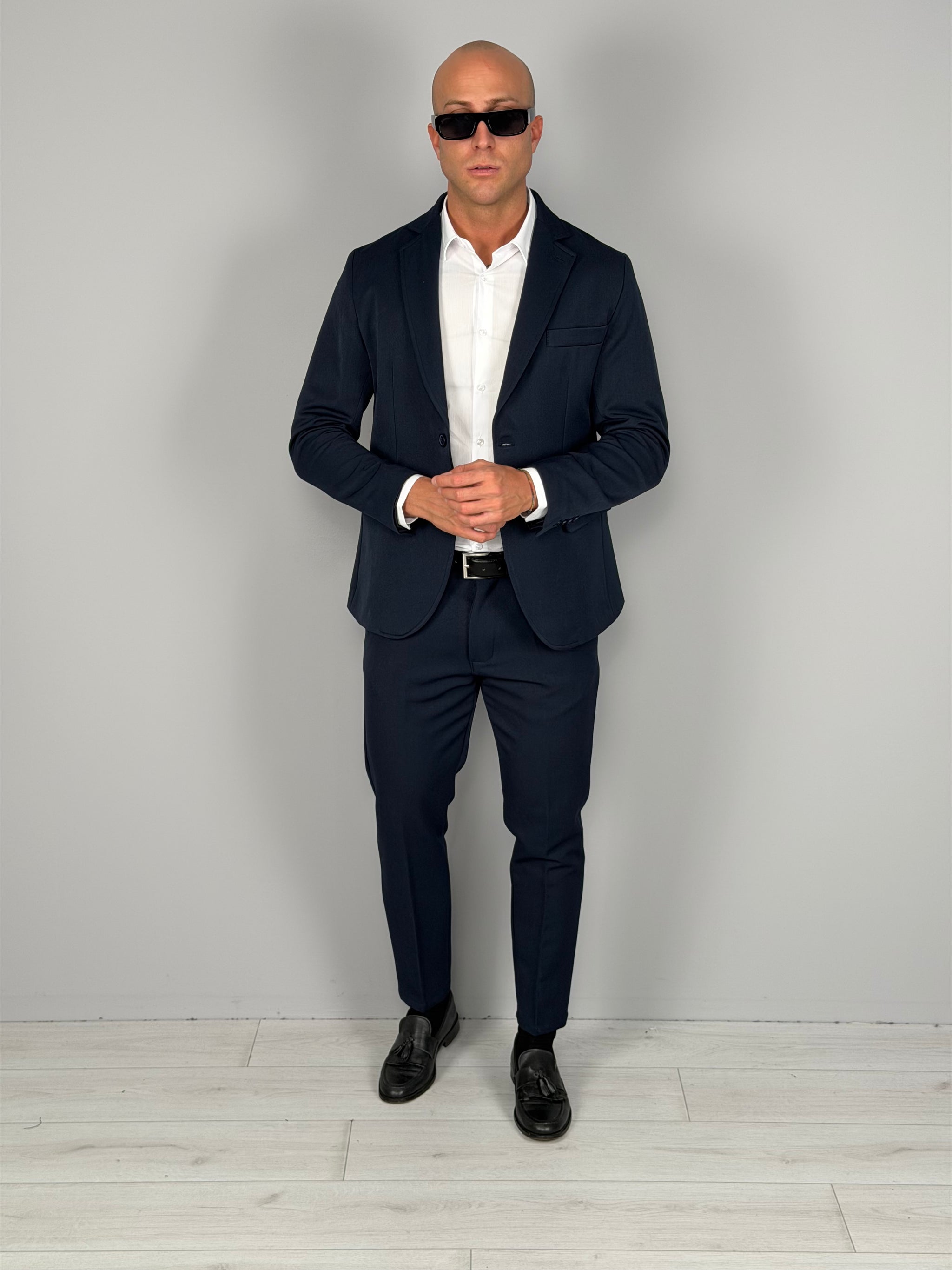 Il taglio asciutto e contemporaneo valorizza la silhouette maschile, mentre la qualità del tessuto garantisce una resa perfetta e una caduta fluida. Disponibile in diverse varianti di colore, si distingue per il suo equilibrio tra tradizione sartoriale e gusto moderno.