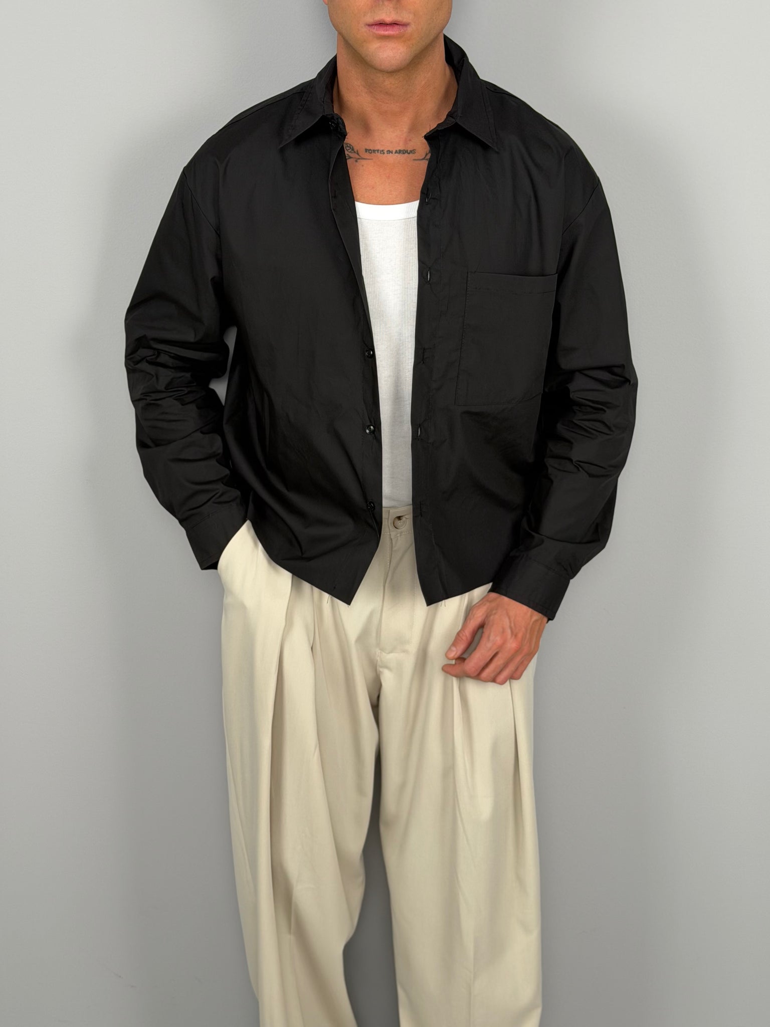 La Camicia Ambit Cotone è un capo essenziale dal gusto contemporaneo, perfetto per chi ama uno stile pulito ma ricercato. Realizzata in 100% cotone, offre una vestibilità comoda e leggera, ideale per la stagione primavera/estate e perfetta da indossare sia aperta su una t-shirt che chiusa per un look più elegante.