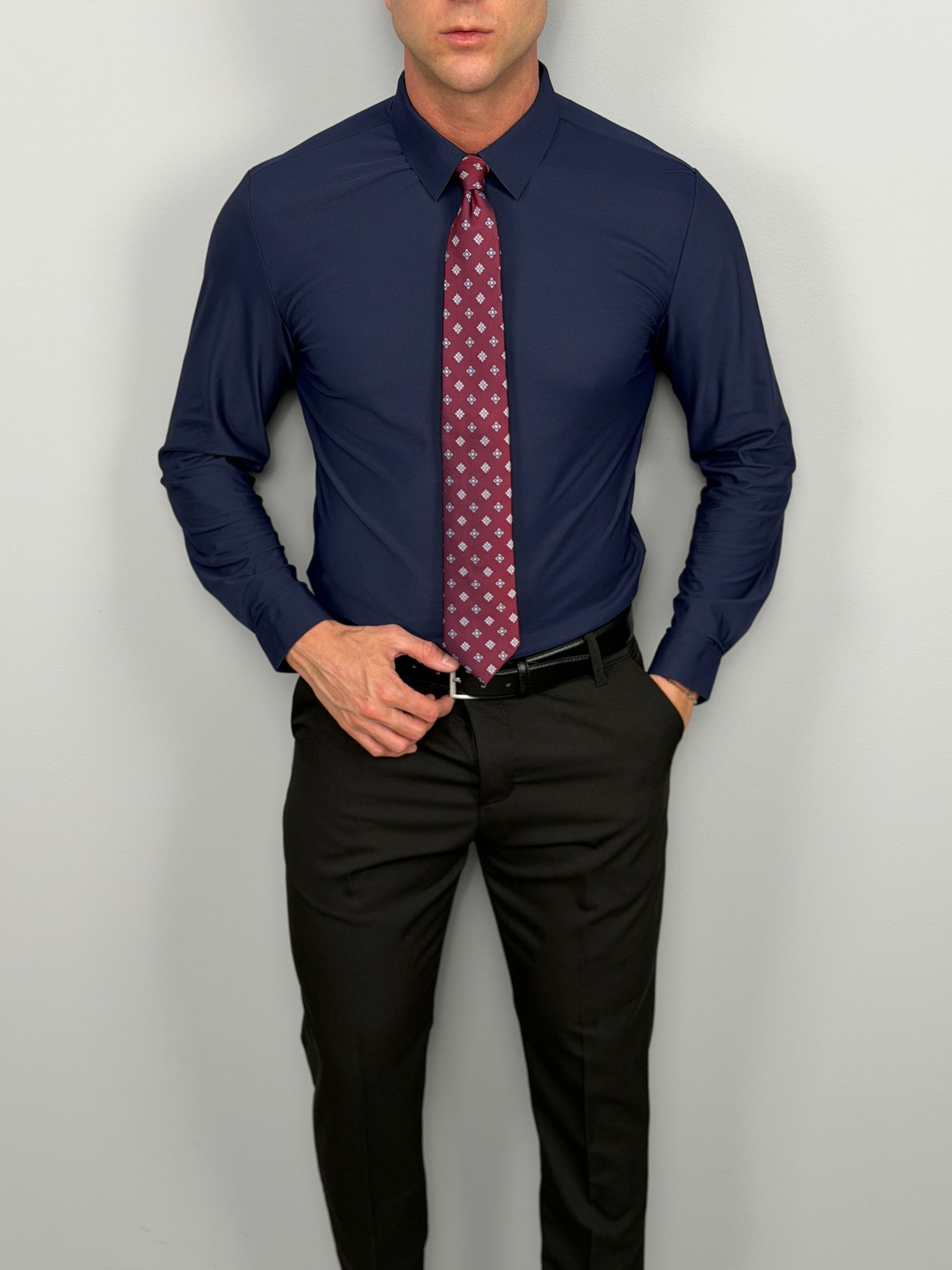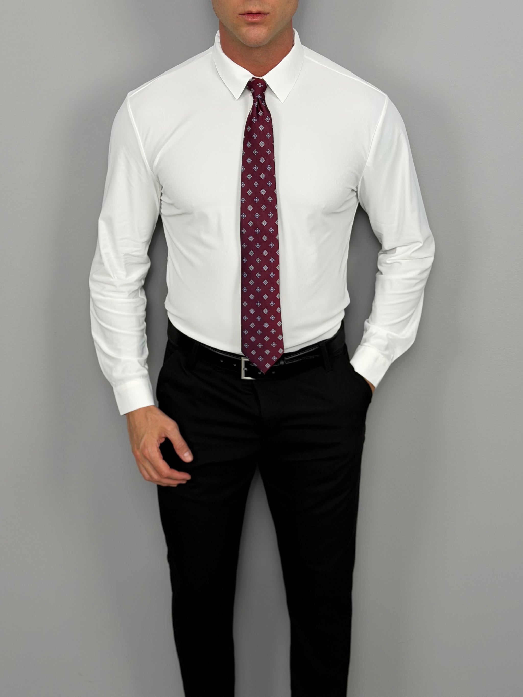 Realizzata in 83% nylon e 17% elastan, offre elasticità, leggerezza e massima libertà di movimento. Il tessuto tecnico garantisce una vestibilità impeccabile e mantiene la camicia sempre ordinata durante tutta la giornata.