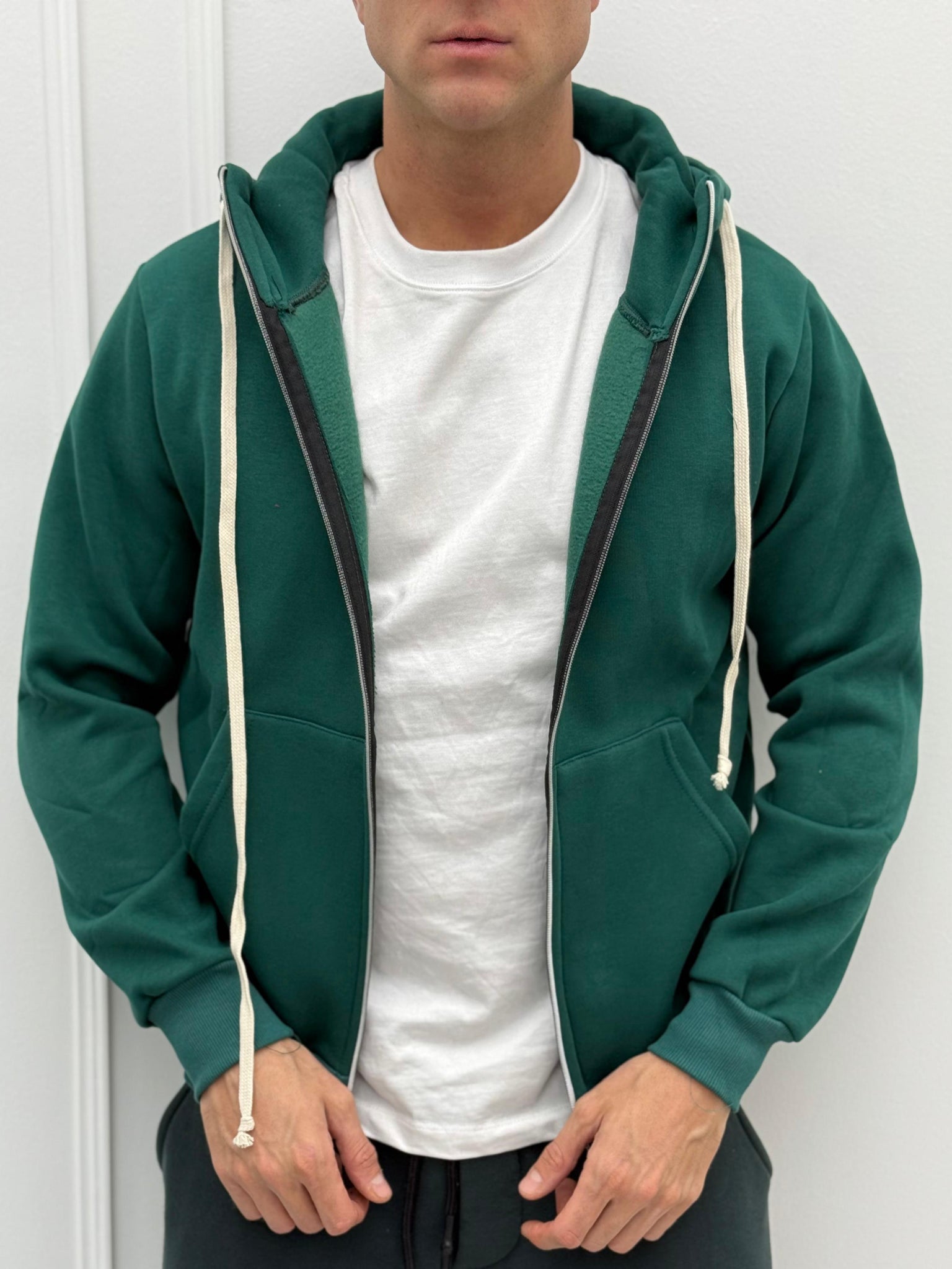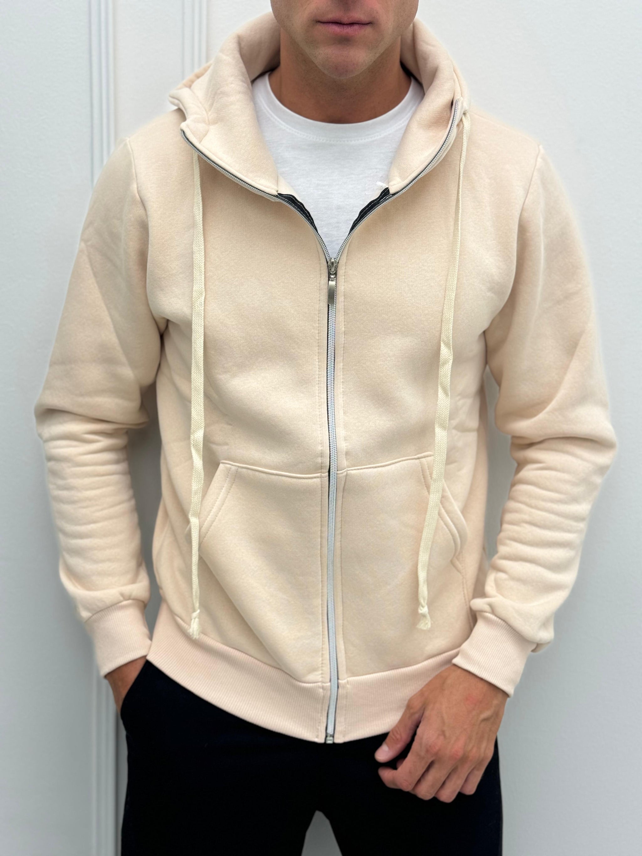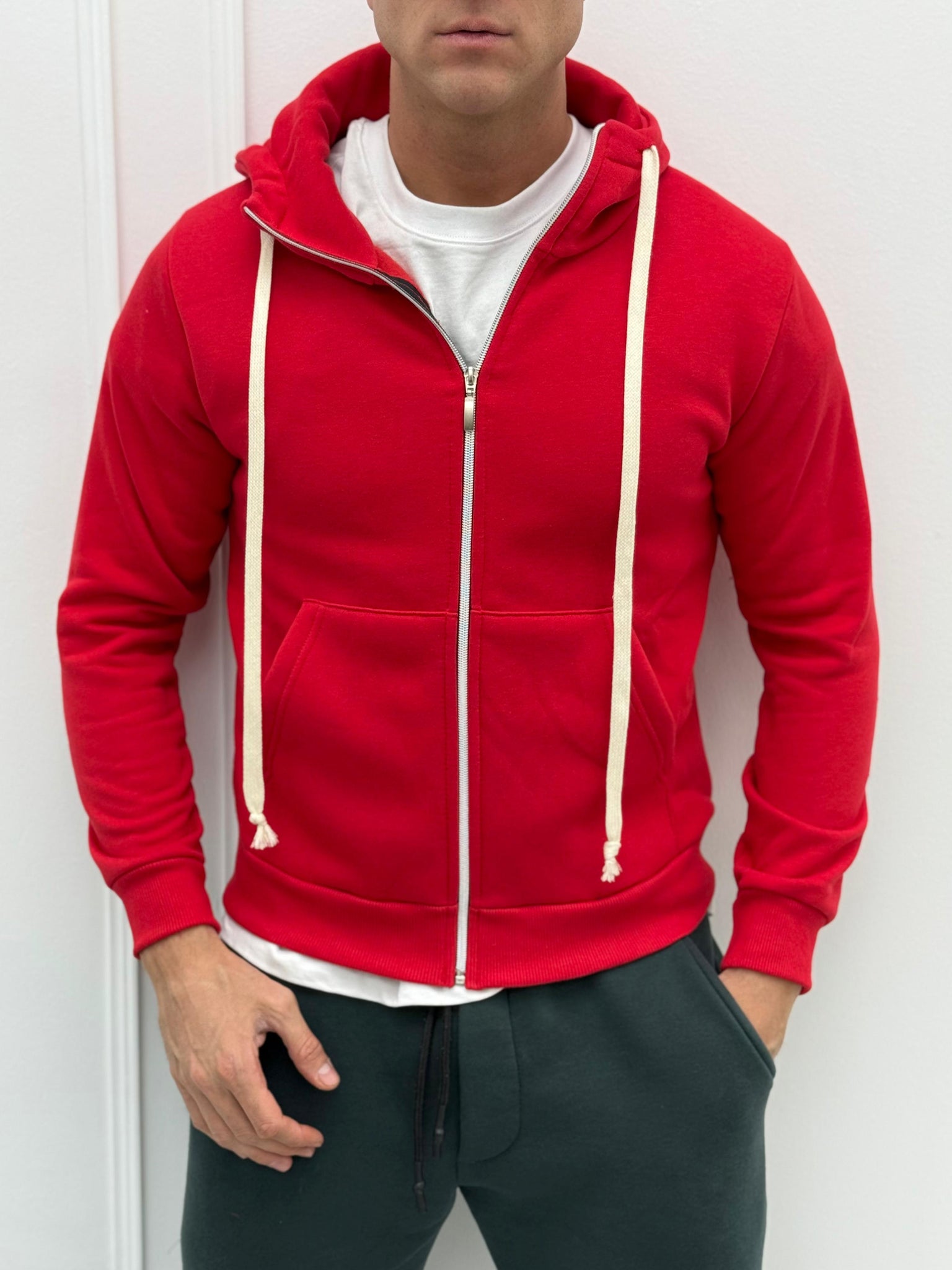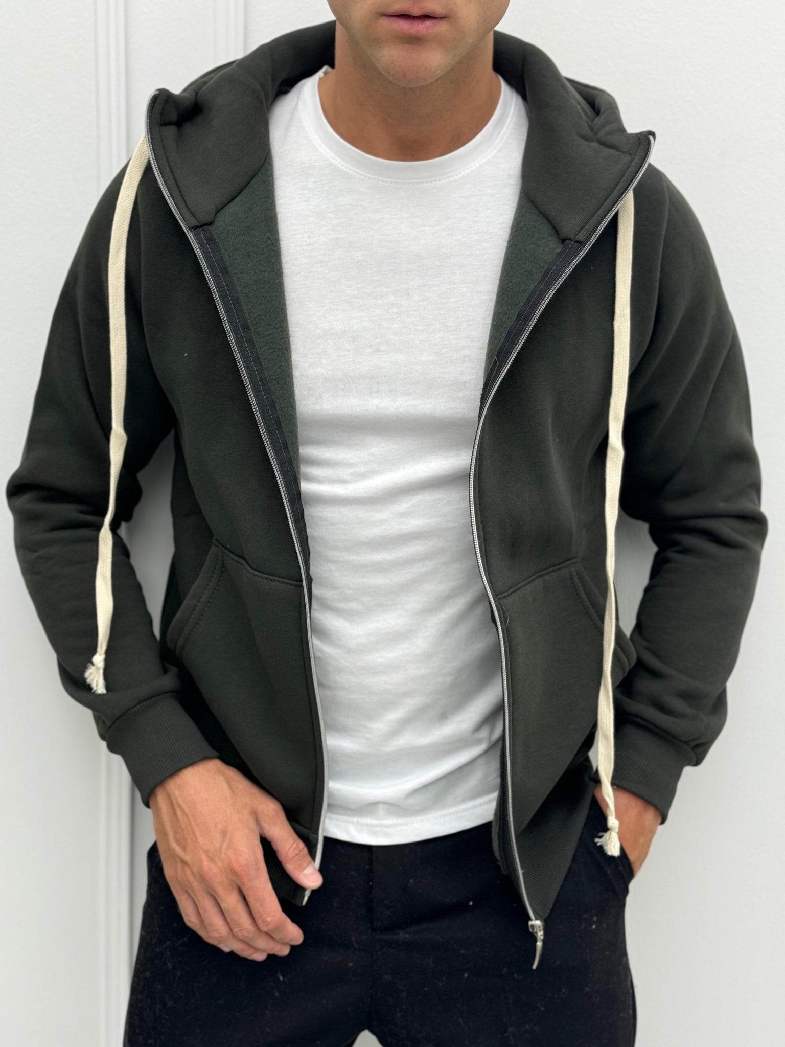 Il design è pulito e moderno: chiusura a zip frontale, cappuccio con coulisse a contrasto e tasche laterali per la massima praticità. I polsini e il fondo a costine assicurano una vestibilità regolare e confortevole, valorizzando la silhouette senza costrizioni.