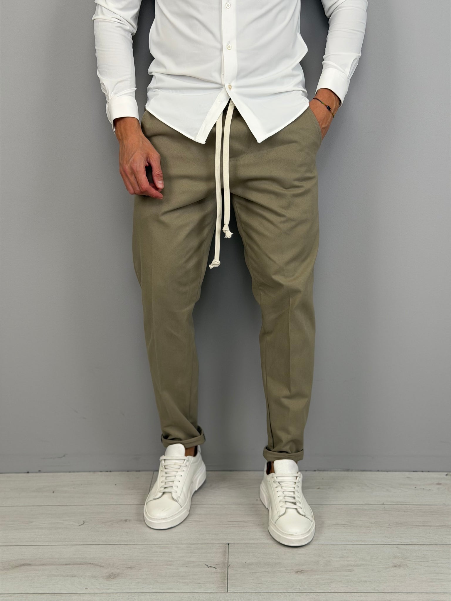 Il modello presenta vita con coulisse regolabile, piega frontale e risvoltino al fondo, dettagli che donano un equilibrio perfetto tra estetica casual e ricercata. Facile da abbinare sia a maglieria che a capispalla più strutturati, è la scelta ideale per un look moderno e curato.