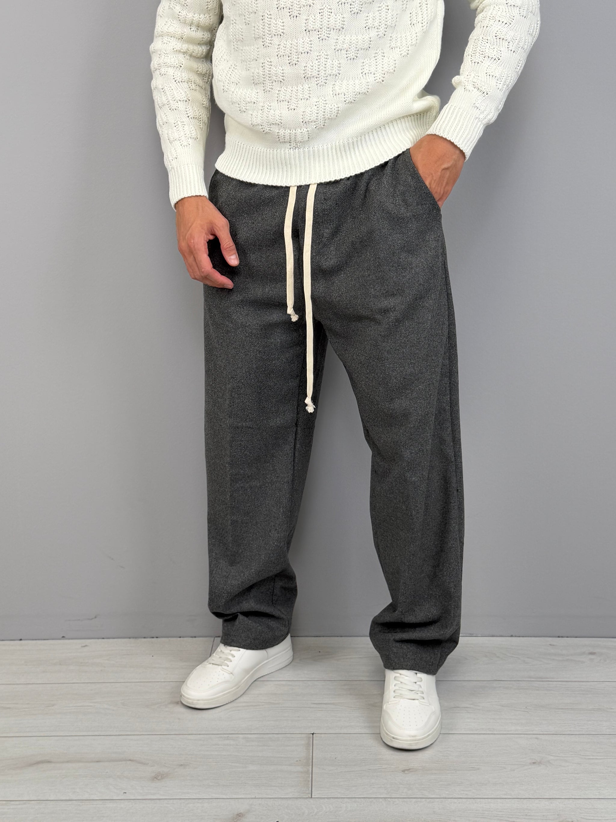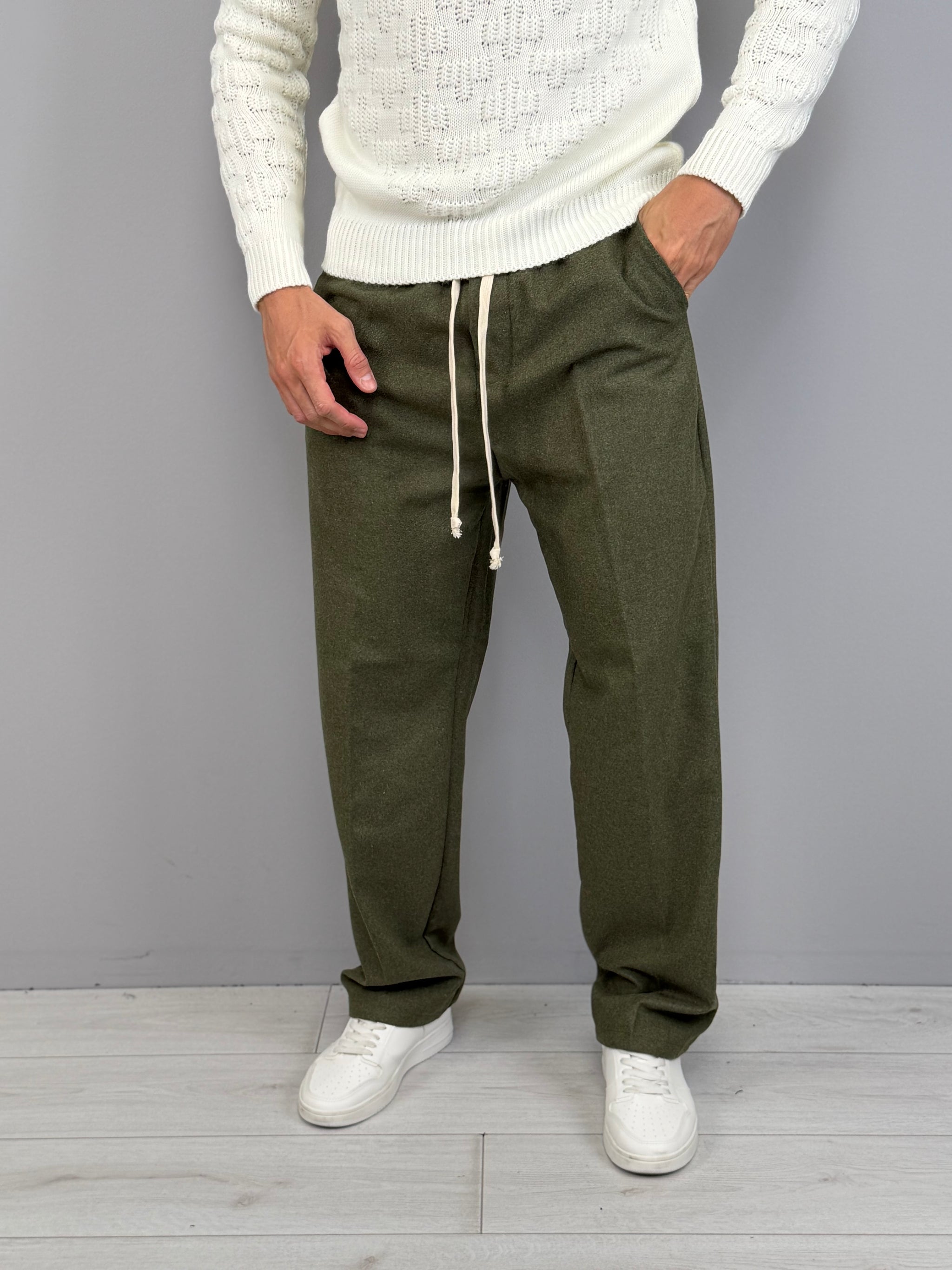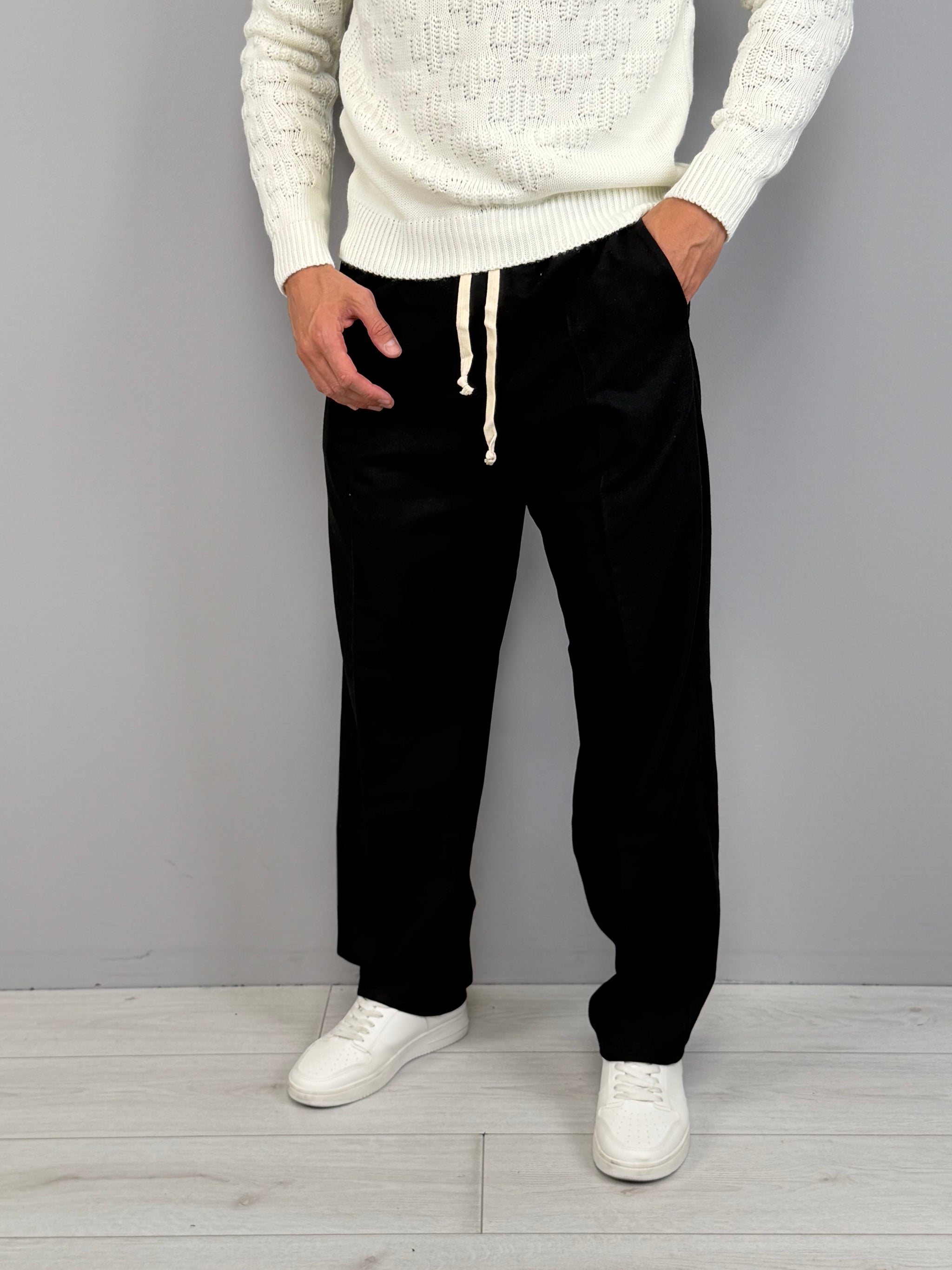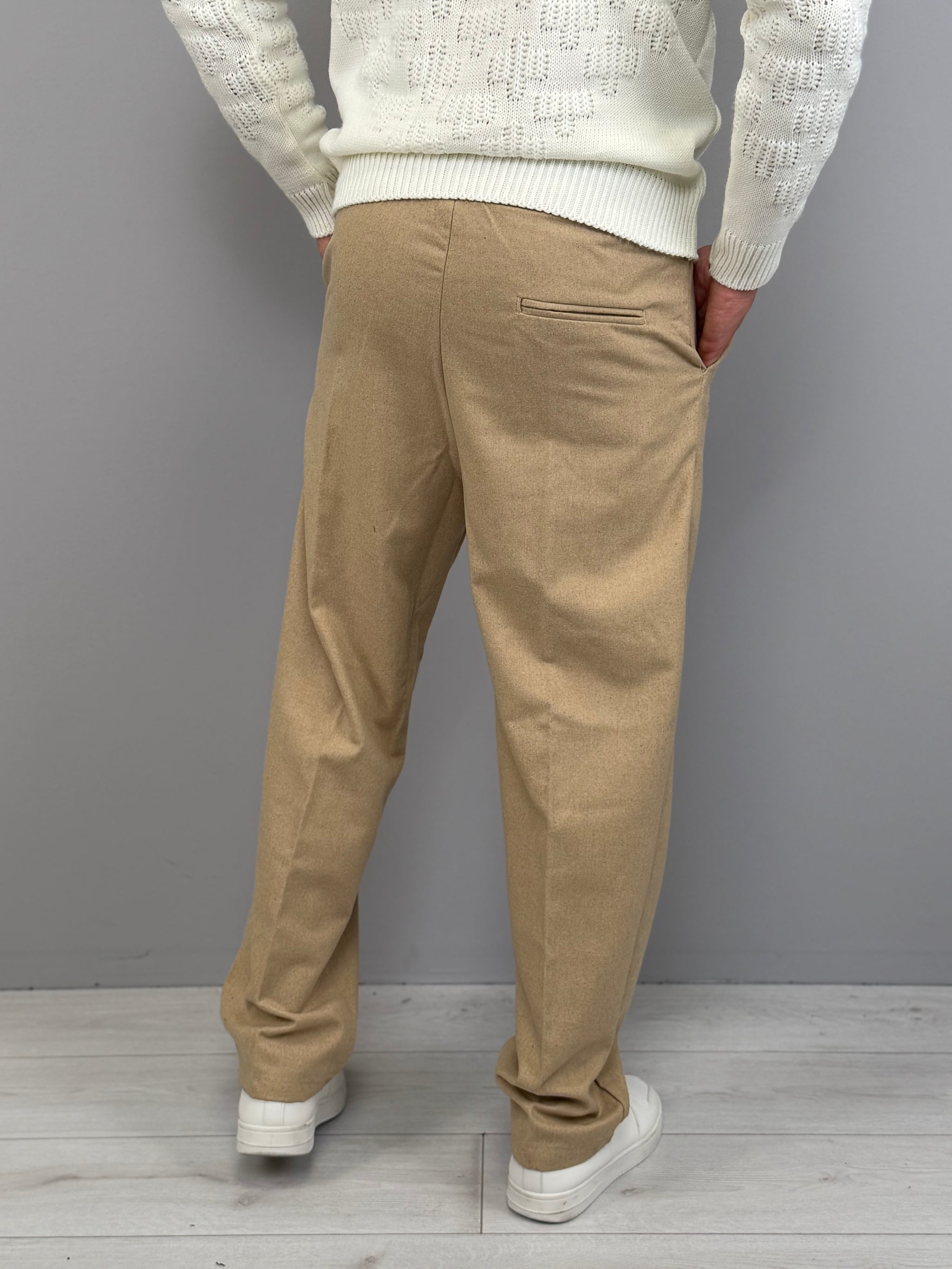 La vita elasticizzata con coulisse aggiunge comfort e praticità, mentre la tasca posteriore dona un tocco sartoriale e funzionale. Disponibile in diverse varianti di colore, è un capo estremamente versatile: ideale con maglieria e sneakers per un outfit casual, oppure con capispalla strutturati per uno stile più sofisticato. Un pantalone moderno, pensato per l’uomo che vuole distinguersi con naturalezza.