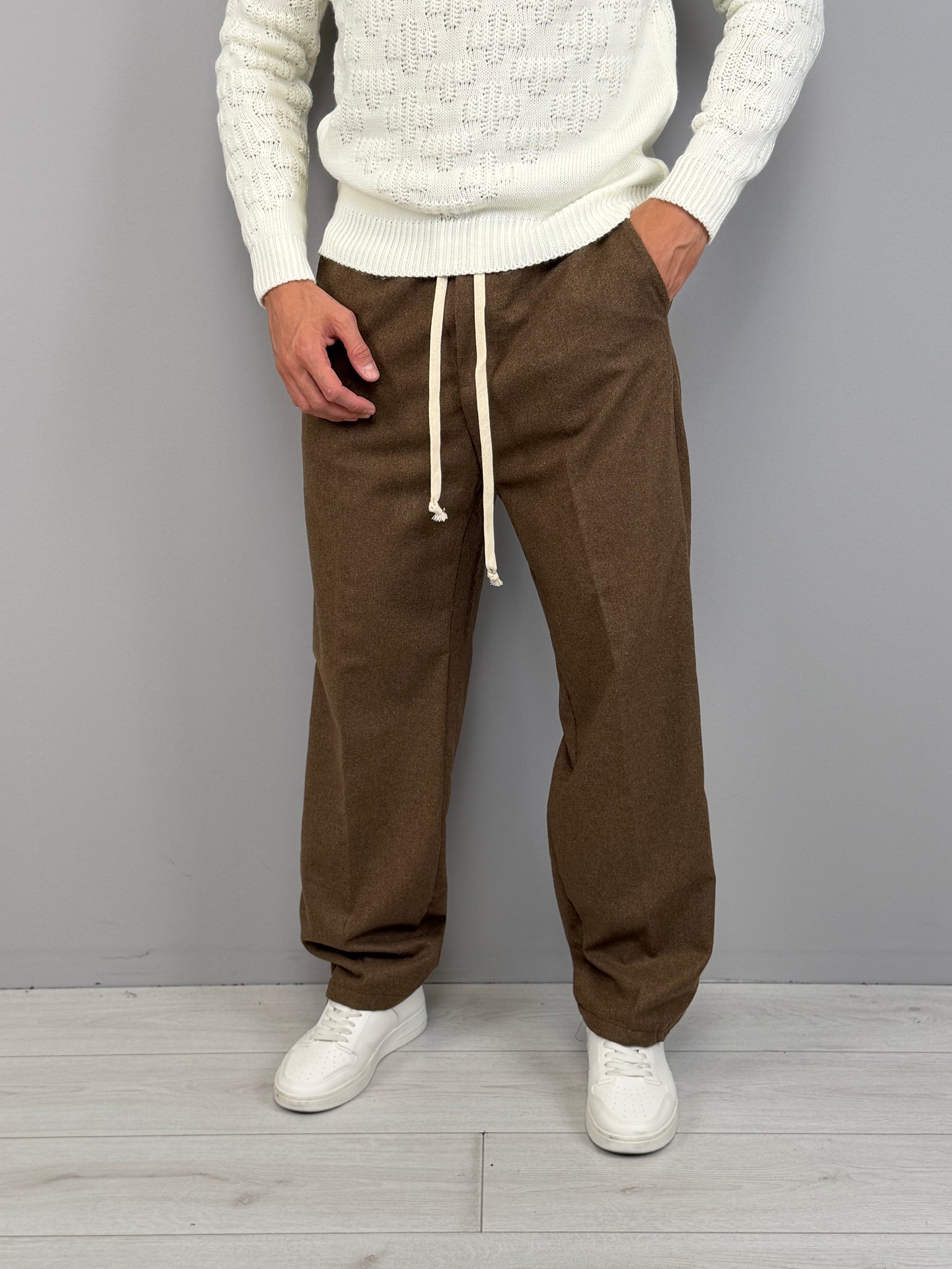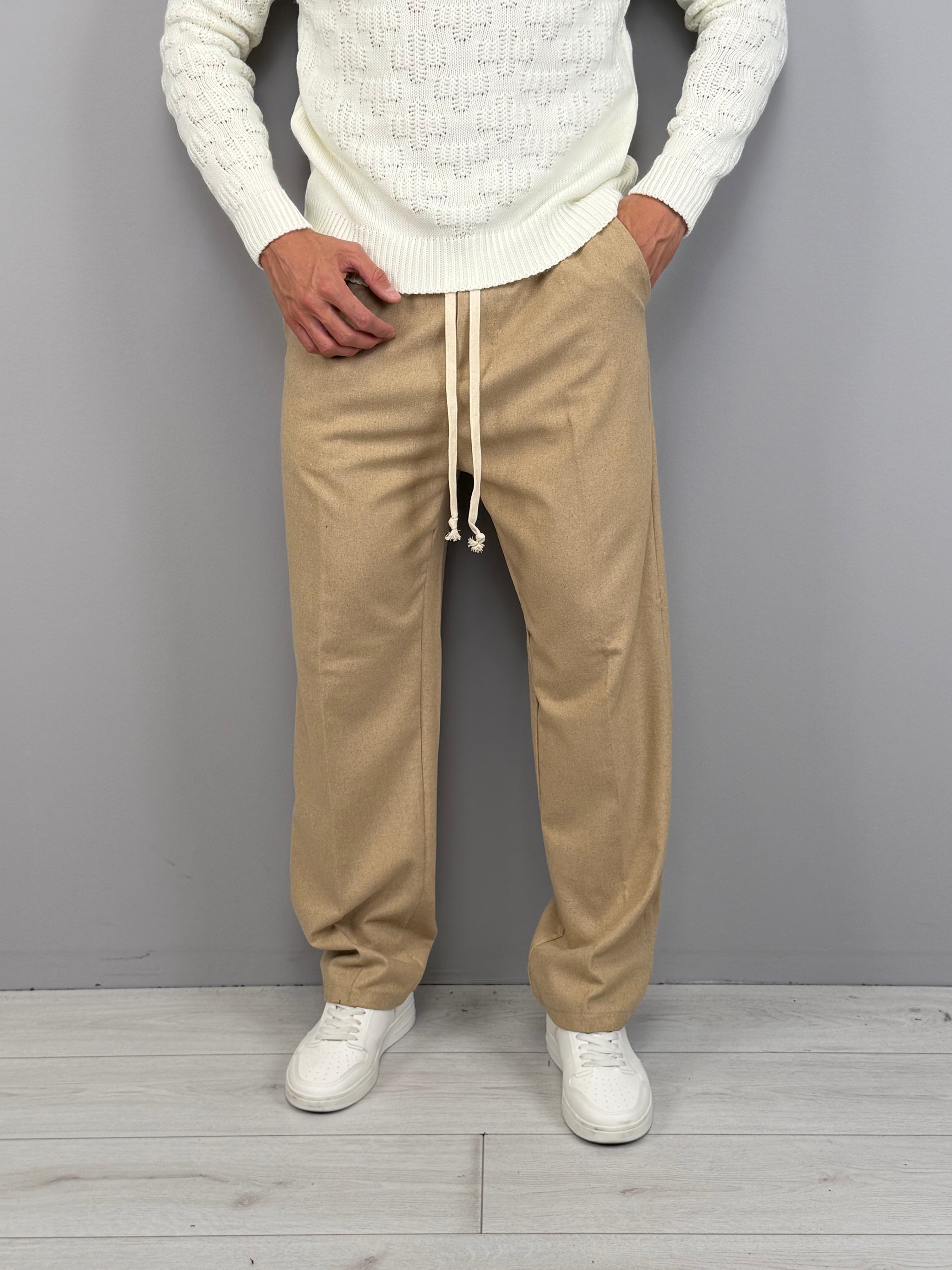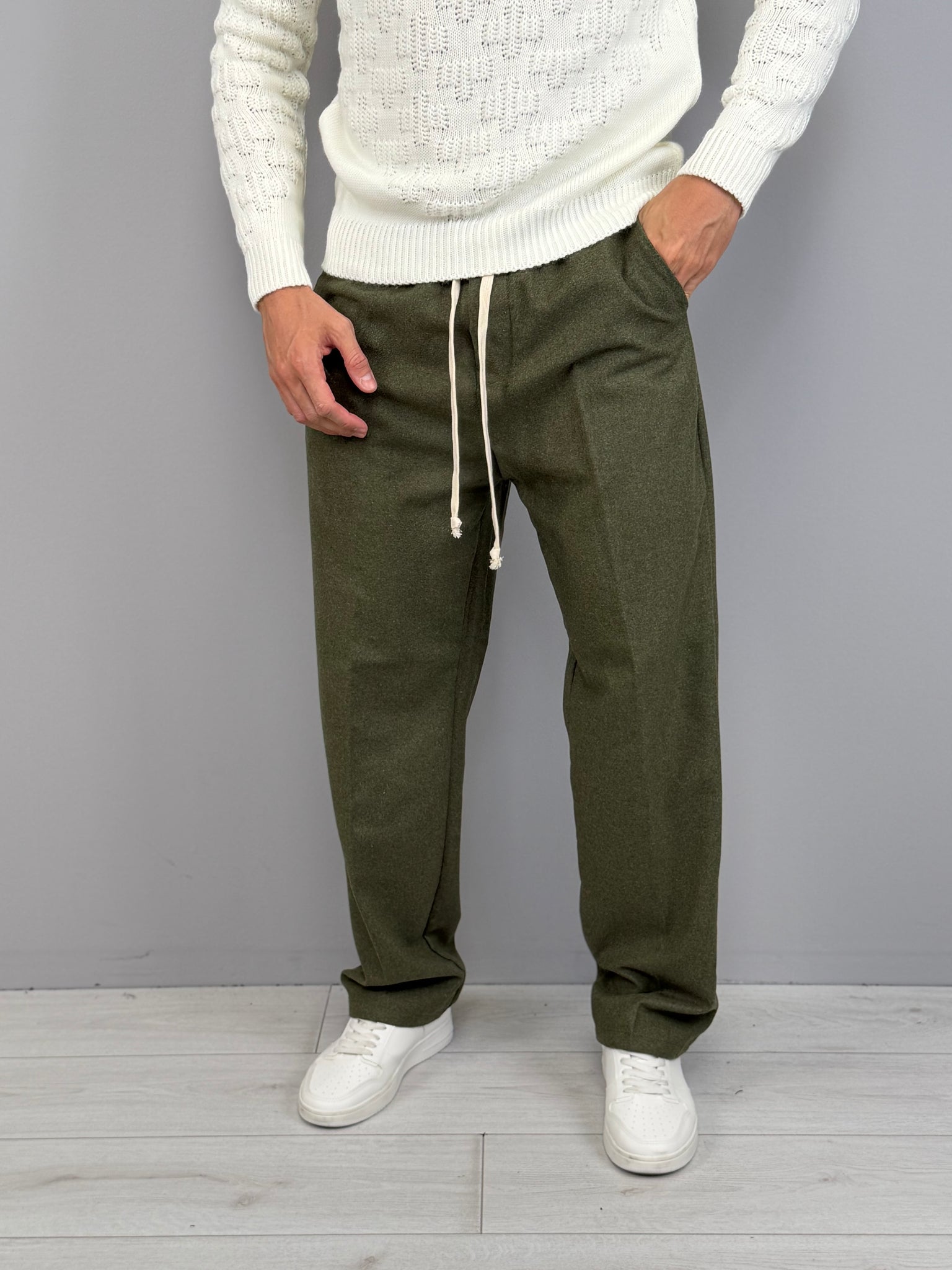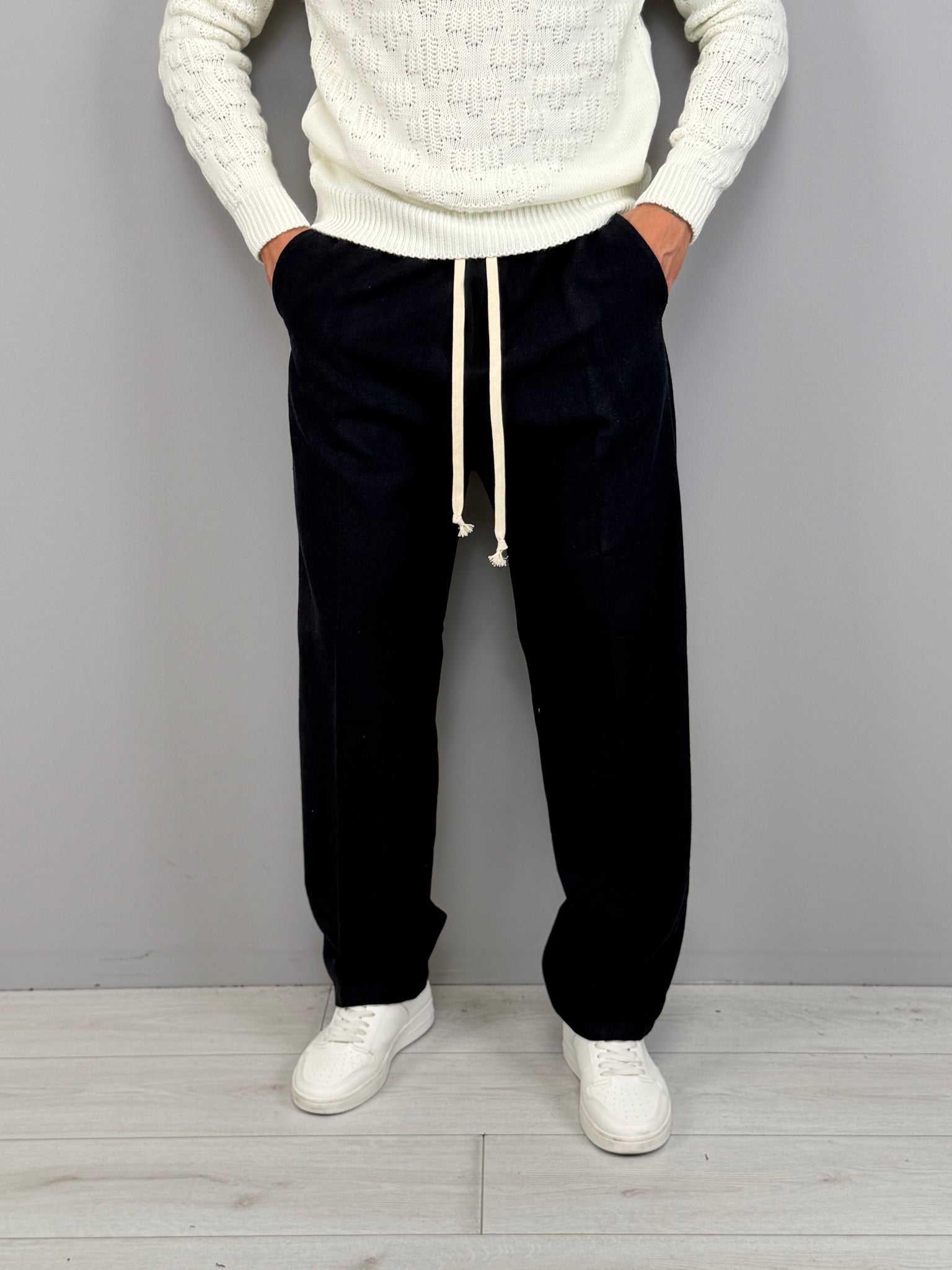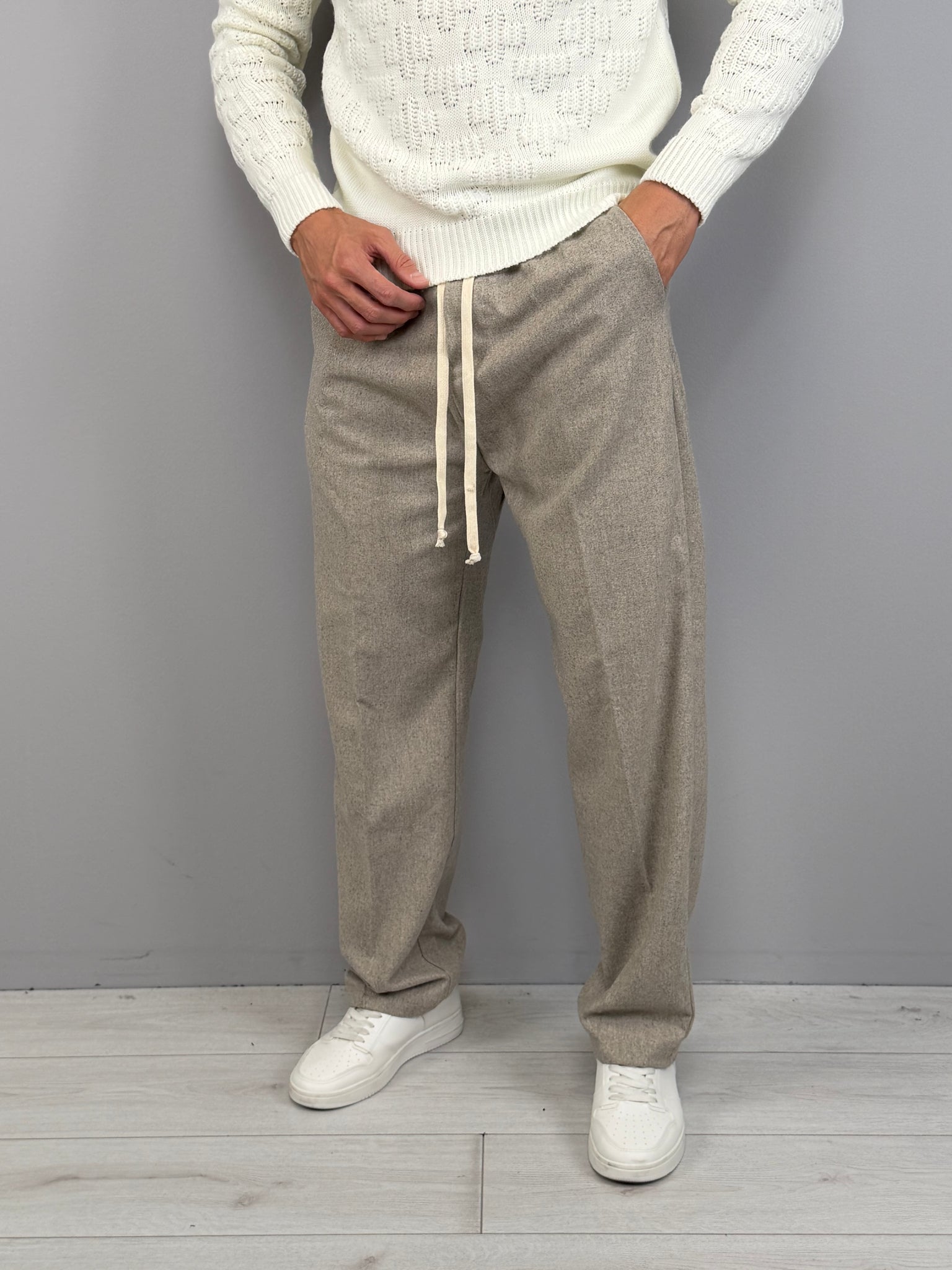 La vita elasticizzata con coulisse aggiunge comfort e praticità, mentre la tasca posteriore dona un tocco sartoriale e funzionale. Disponibile in diverse varianti di colore, è un capo estremamente versatile: ideale con maglieria e sneakers per un outfit casual, oppure con capispalla strutturati per uno stile più sofisticato. Un pantalone moderno, pensato per l’uomo che vuole distinguersi con naturalezza.