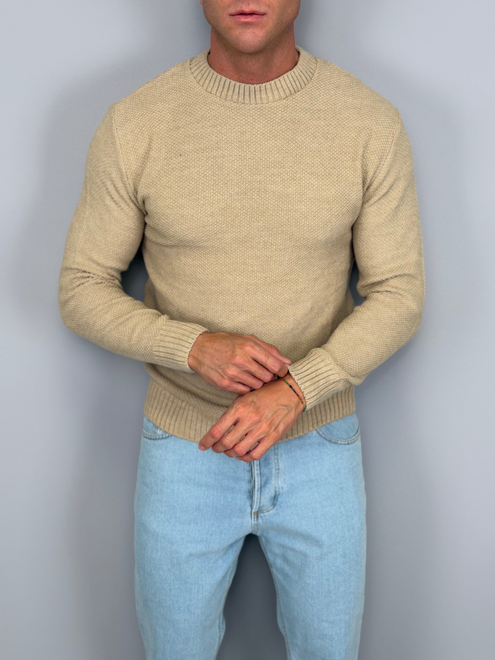 Realizzato in misto lana, garantisce calore e morbidezza senza rinunciare alla leggerezza, adattandosi perfettamente alla silhouette grazie alla vestibilità regolare. Il design pulito con collo girocollo e finiture a costine su polsini e fondo dona un look sobrio ma raffinato, facilmente abbinabile sia a jeans che a pantaloni eleganti.