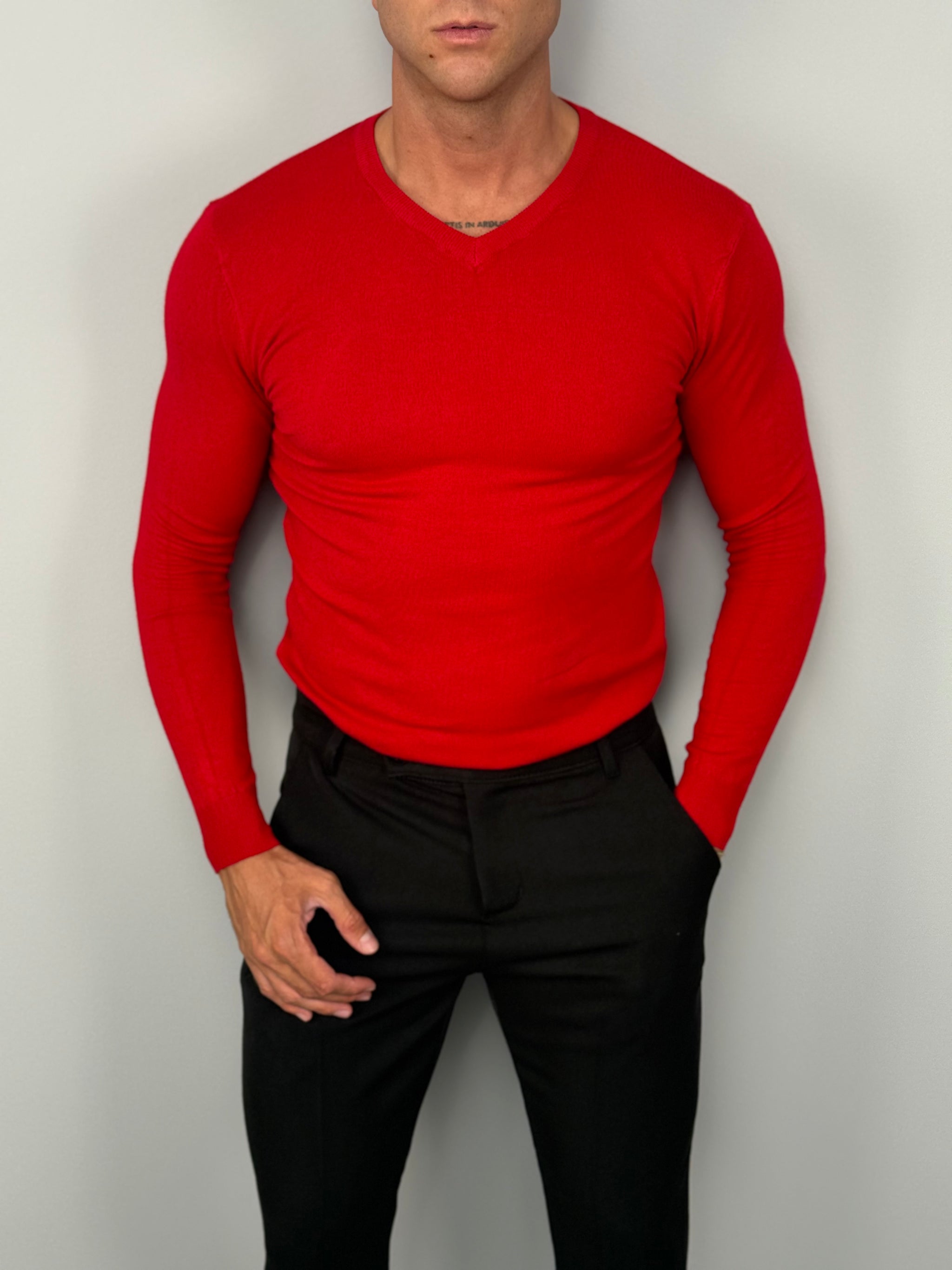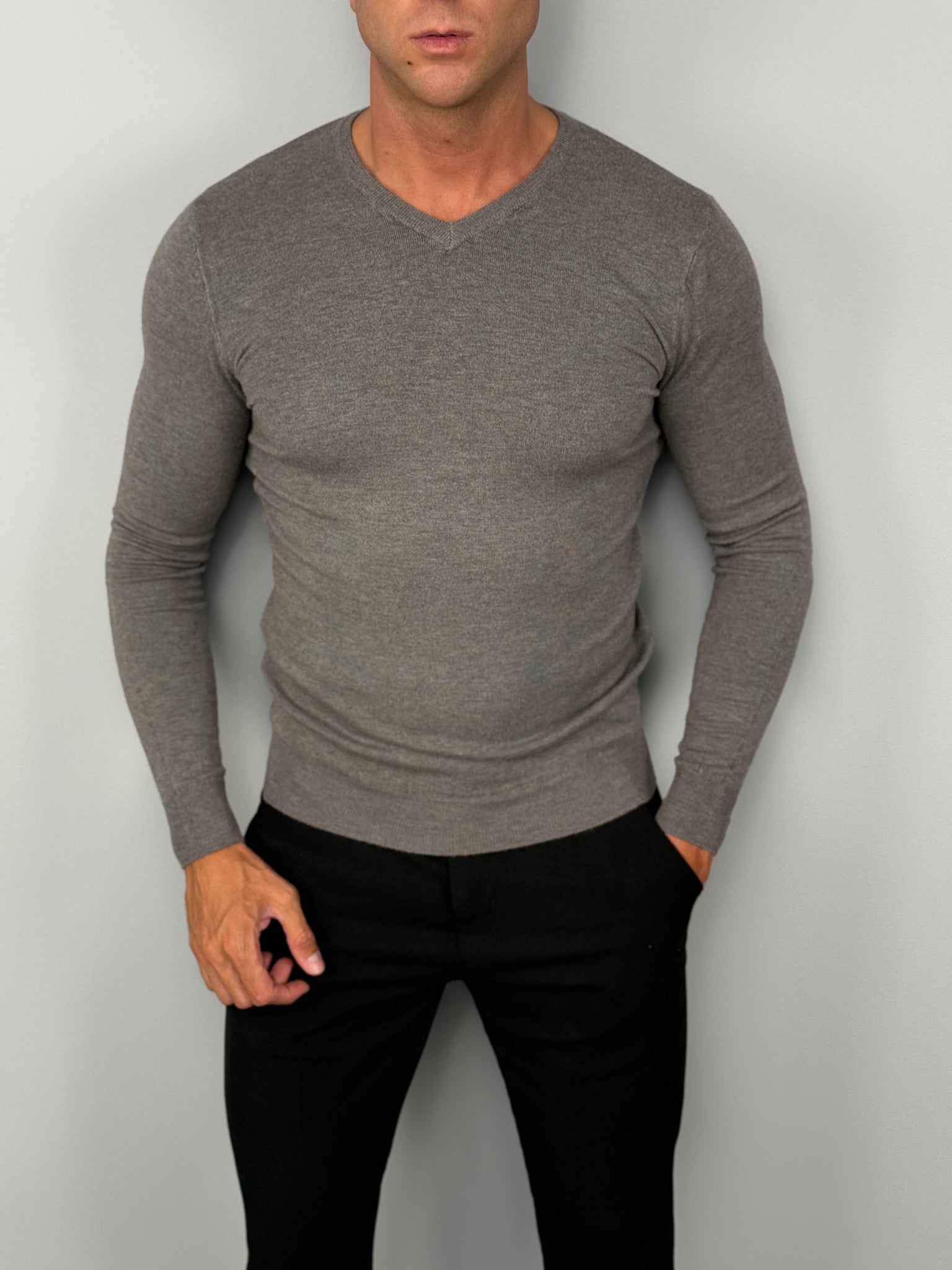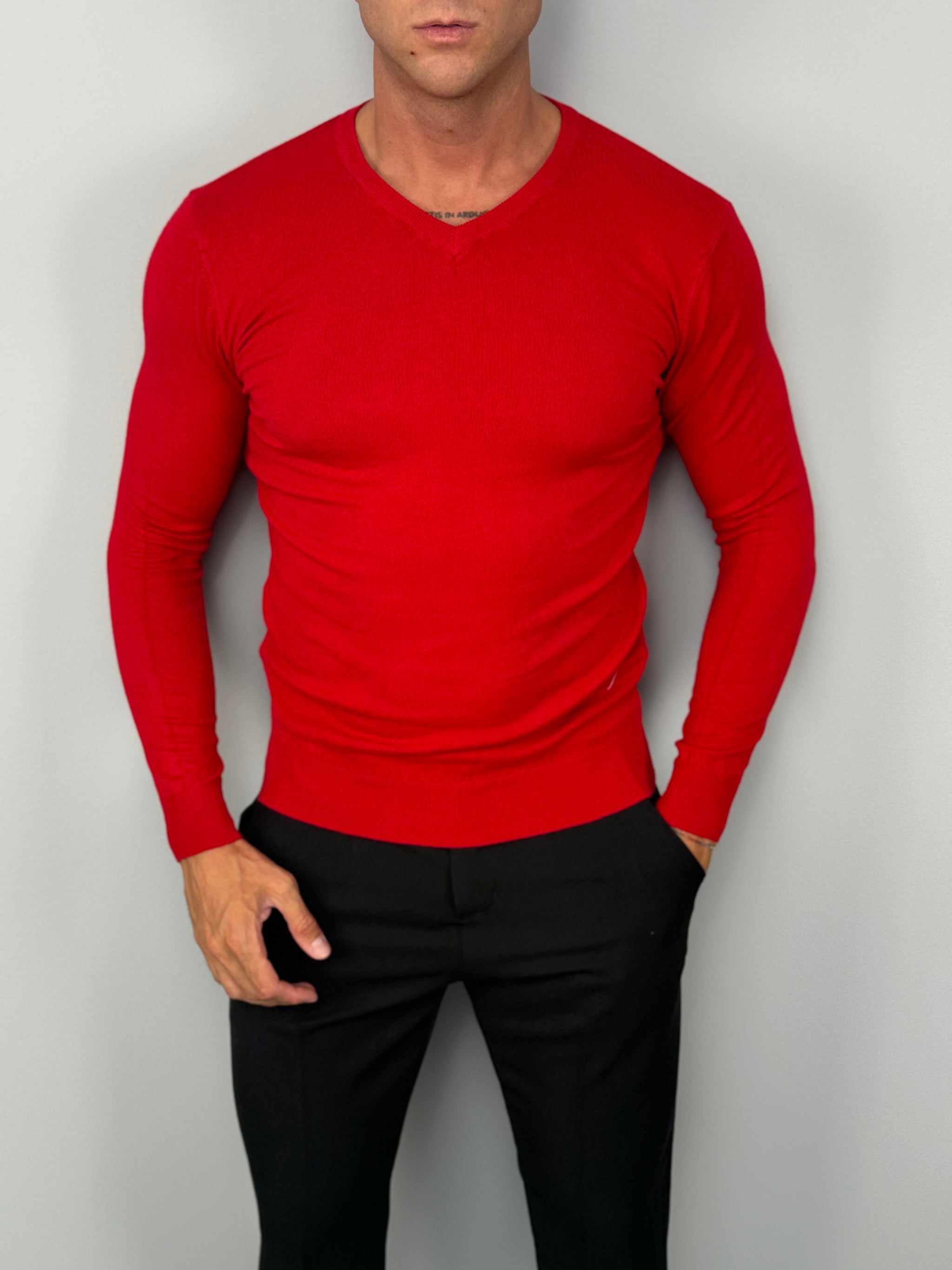 Lo scollo a V dona un tocco moderno e valorizza la linea del torace, rendendolo ideale sia da indossare da solo che sotto una giacca o una camicia. Il design pulito e minimalista lo rende adatto a ogni occasione — dall’ufficio alle serate casual.