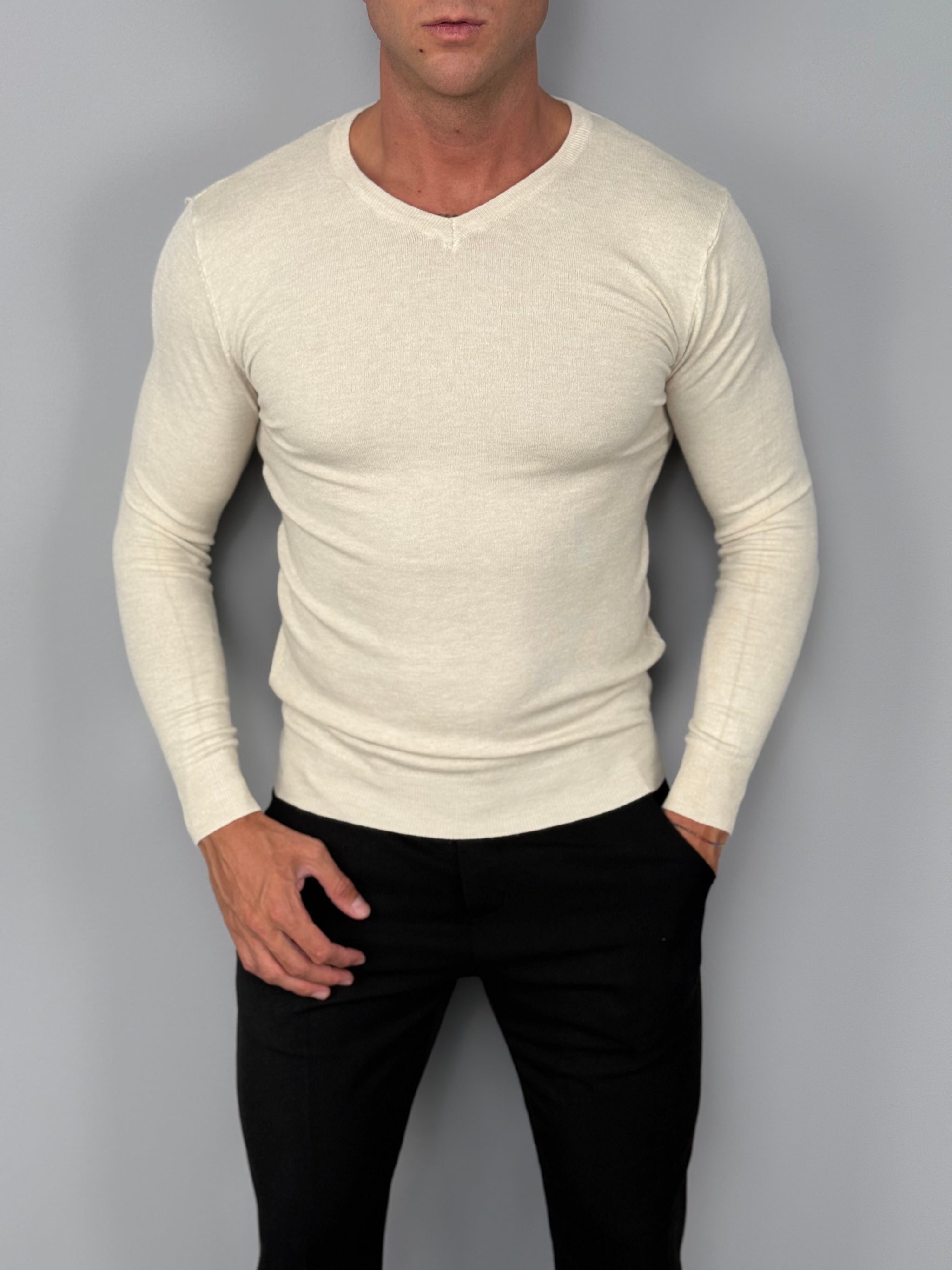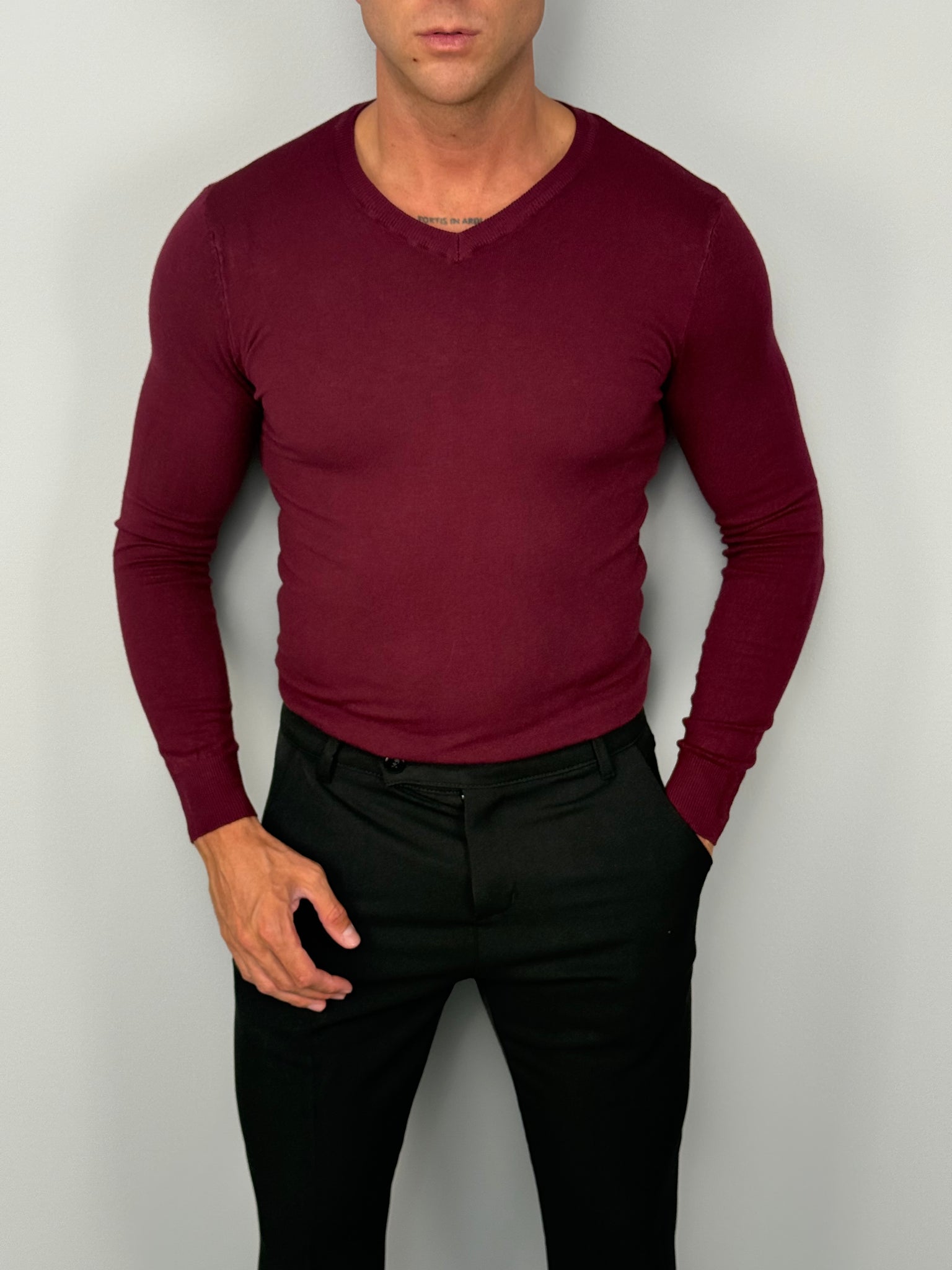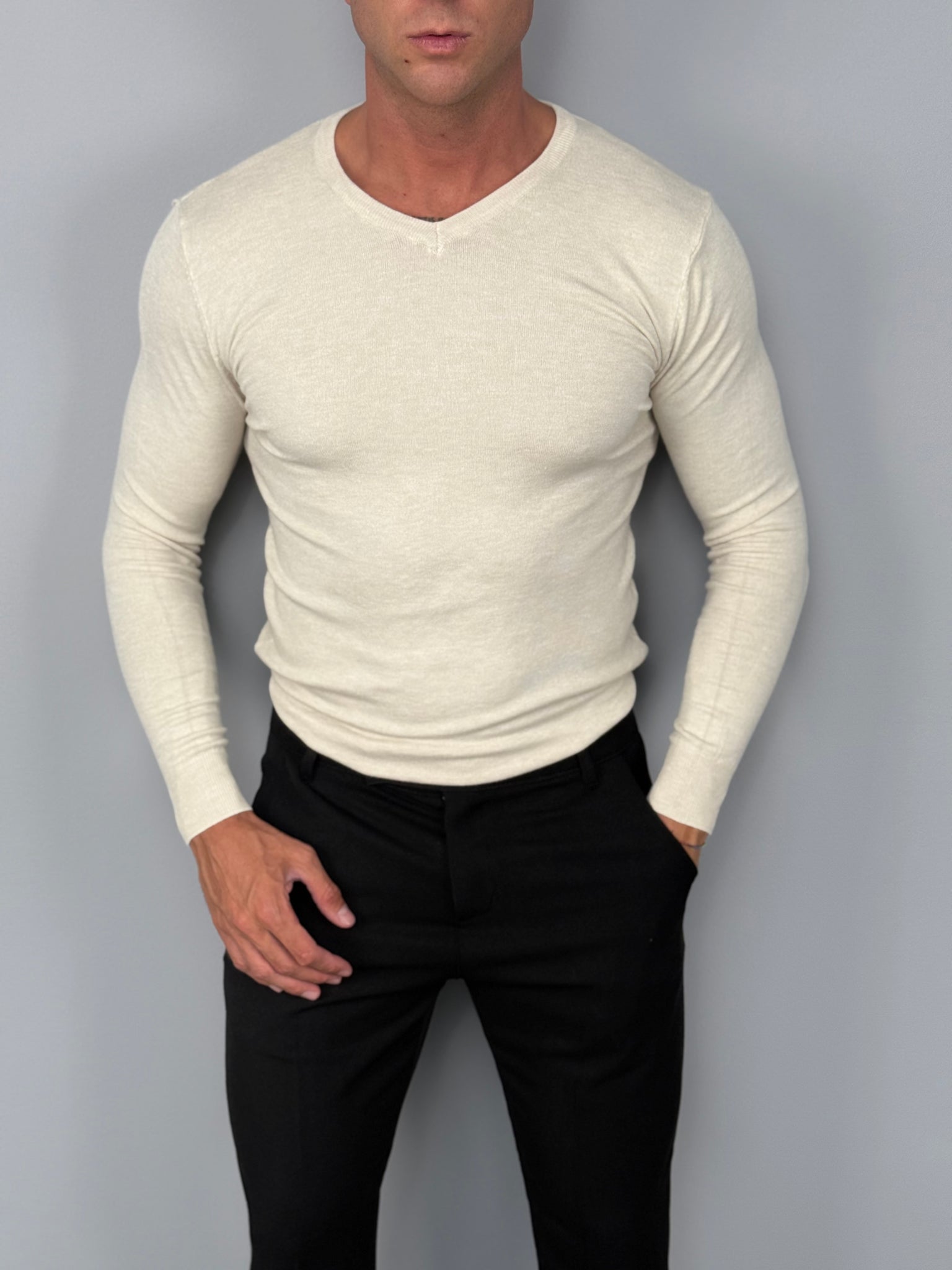 Lo scollo a V dona un tocco moderno e valorizza la linea del torace, rendendolo ideale sia da indossare da solo che sotto una giacca o una camicia. Il design pulito e minimalista lo rende adatto a ogni occasione — dall’ufficio alle serate casual.