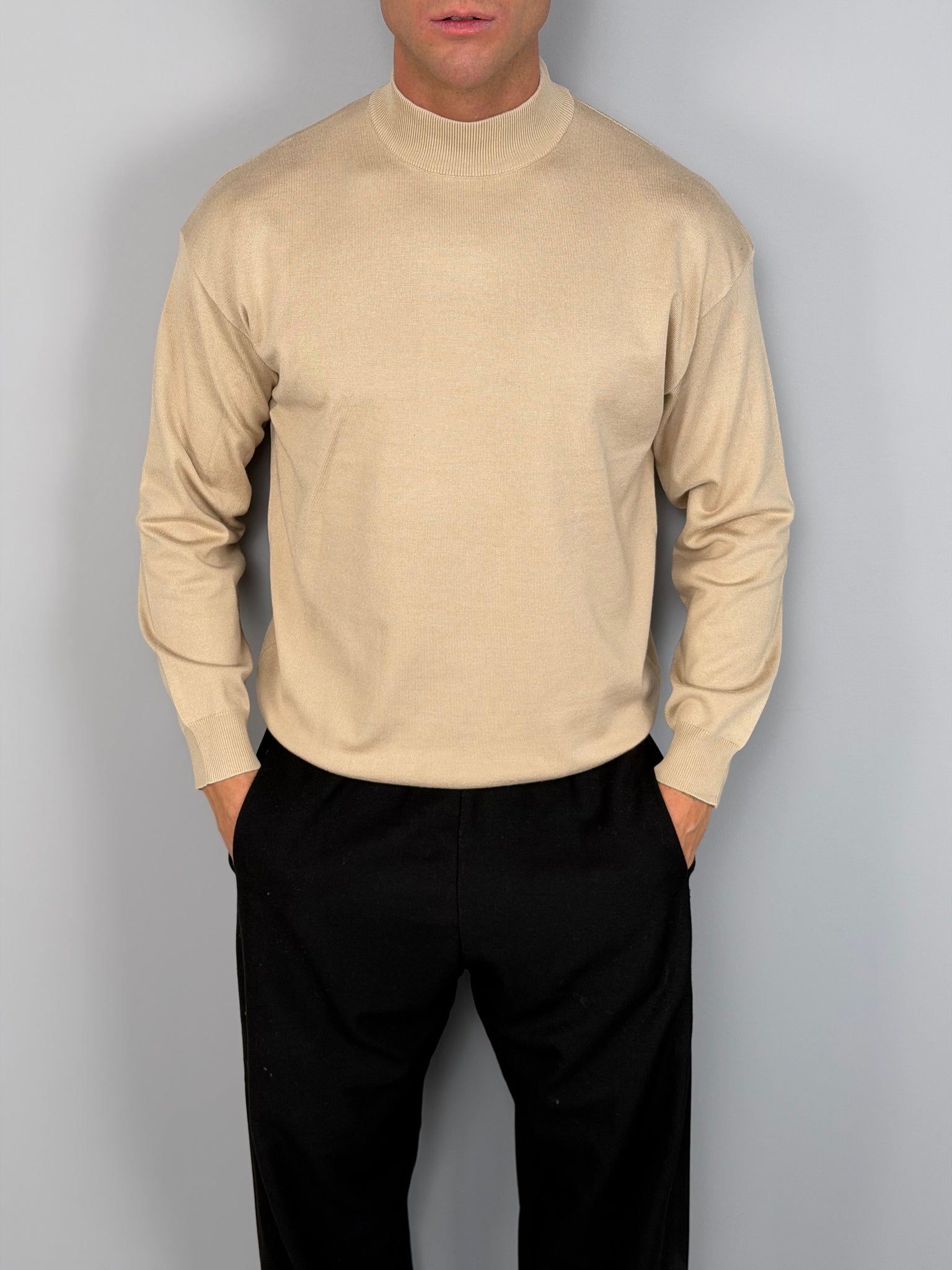 Il collo lupetto dona un tocco elegante e contemporaneo, ideale sia come base sotto giacche e cappotti sia indossato da solo per un look pulito e minimale. Il design è lineare e versatile, pensato per adattarsi facilmente a outfit casual, smart-casual o più curati.