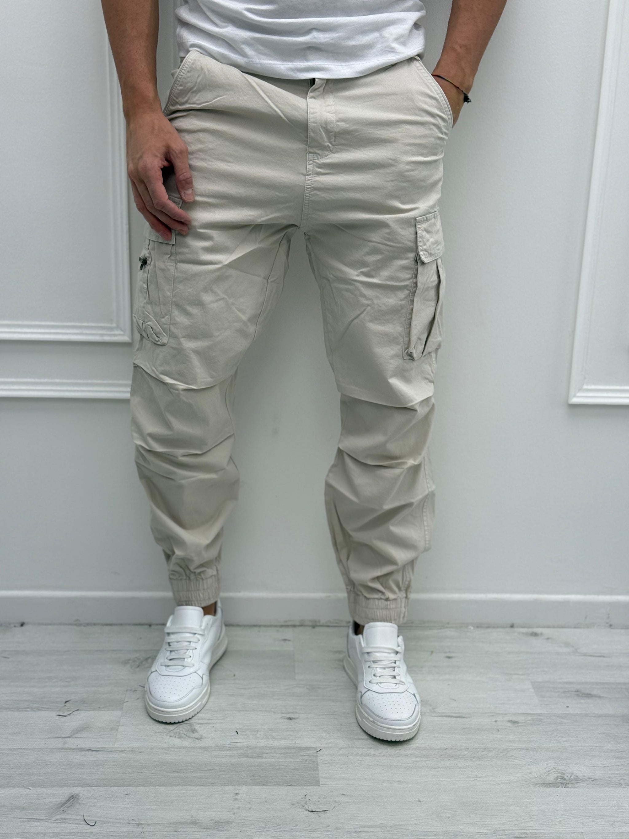 PANTALONE CARGO ELASTICO - rimasto PANNA tg.S
